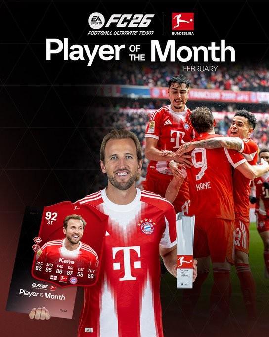 北京时间3月12日,德甲官方发布公告,宣布凯恩当选二月最佳球员。
